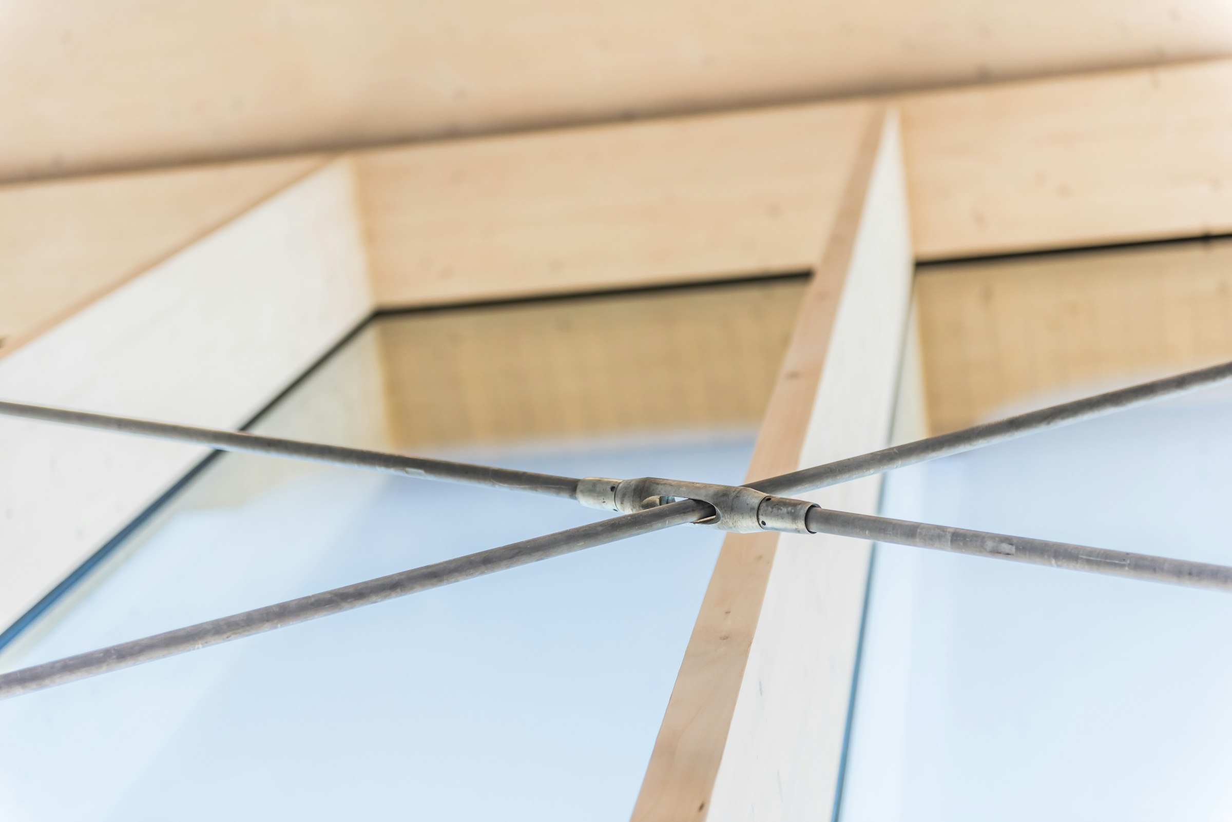 Het dak werd opgebouwd met houten Novatop Element prefab cassettes, die veel lichter zijn dan de CLT panelen, maar eveneens in 1 beweging ruwbouw en afwerking combineren. De onderzijde heeft het zelfde uitzicht als de CLT panelen en krijgt een analoge verder afwerking.